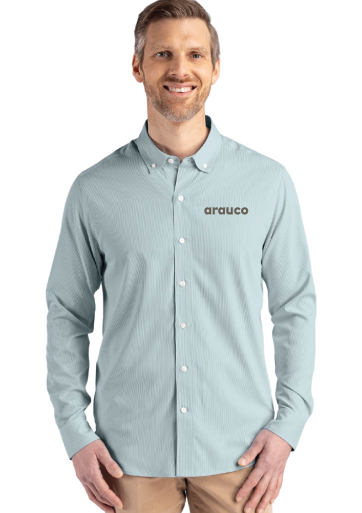 Cutter & Buck Skyline Epic Confidence Recycled Pinstripe Men's Long Sleeve Dress Shirt